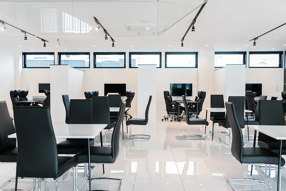 広々とした展示場に、ごゆっくりとお寛ぎ頂ける
