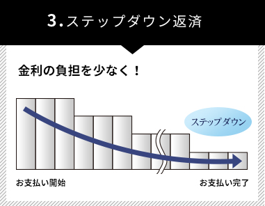 通常の均等払いのほか、5パターンの自由なご返済プランを設定することができます。
